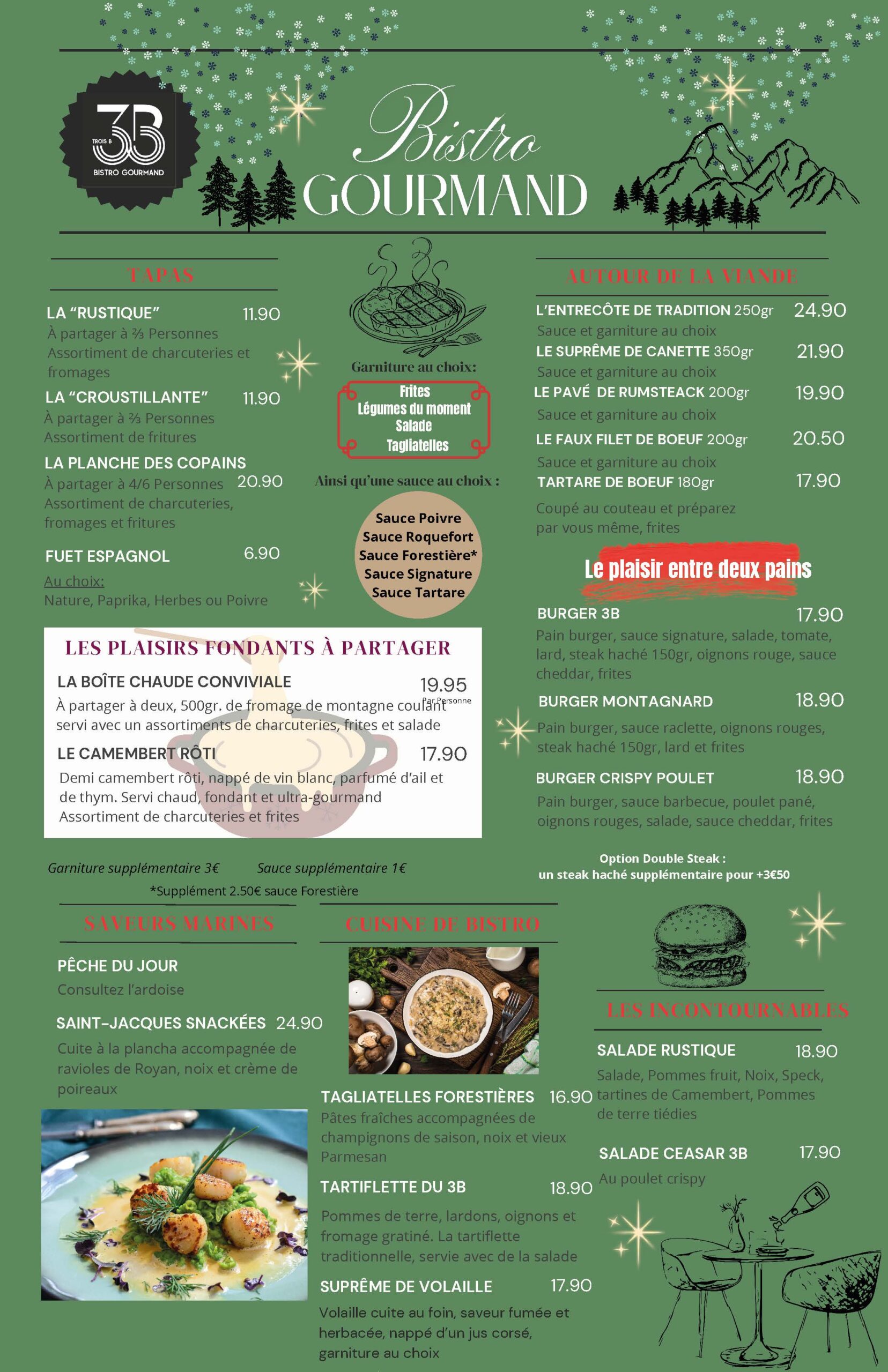 La carte 3B répond à tous les budgets une cuisine simple et conviviale.